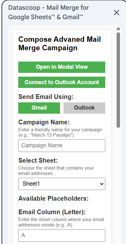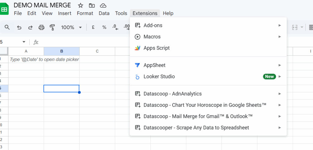 Click on Extension Tab -> Datascoop – Mail Merge for Gmail™ & Outlook™
